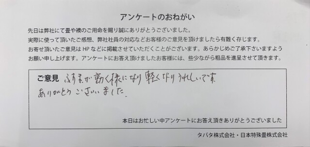 ふすまの張替をご注文頂いた大阪市平野区のお客様よりアンケートが届きました。